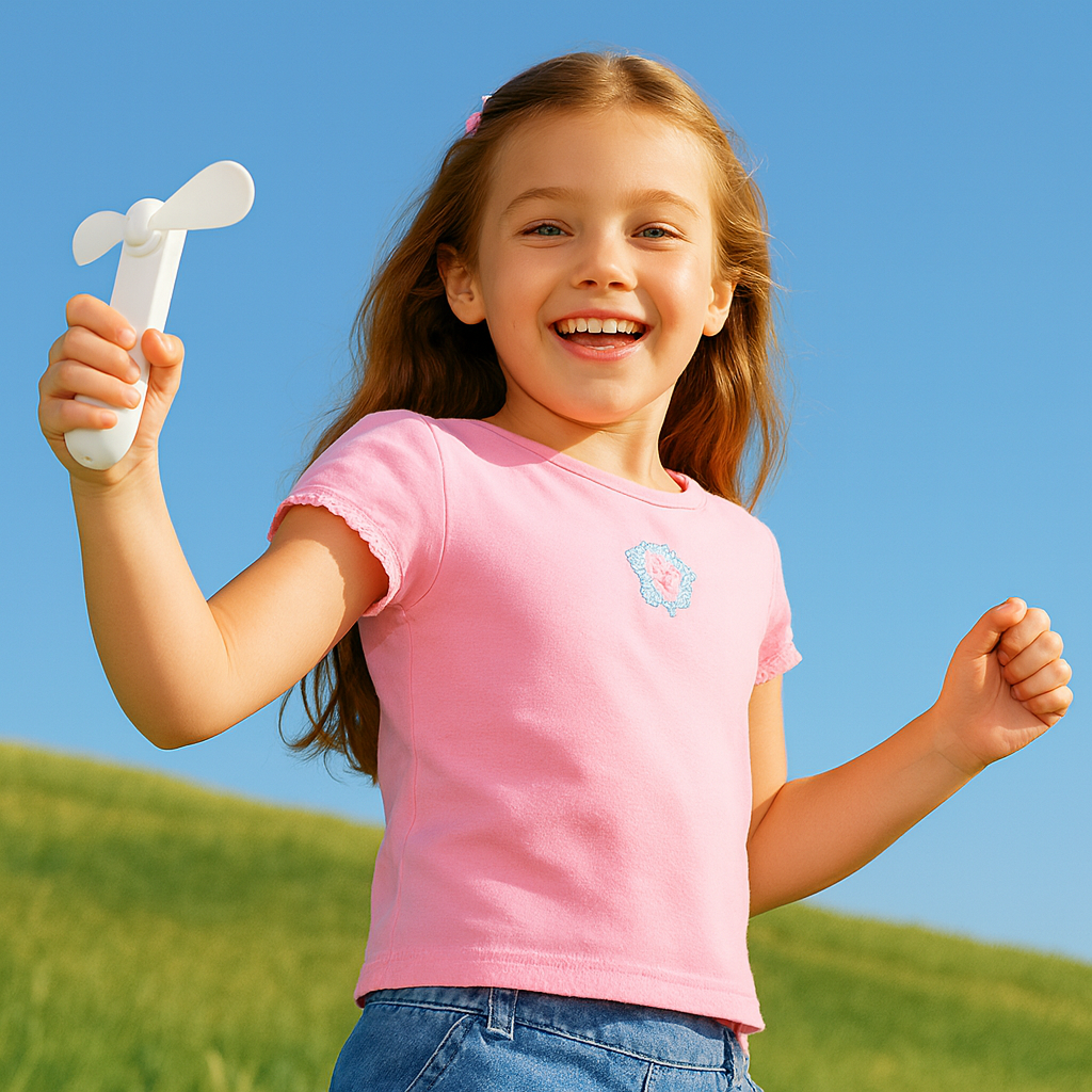 Lightweight and easy to hold, this portable fan keeps kids cool and happy during outdoor play, trips, and sunny days—safe, fun, and refreshing anytime.
